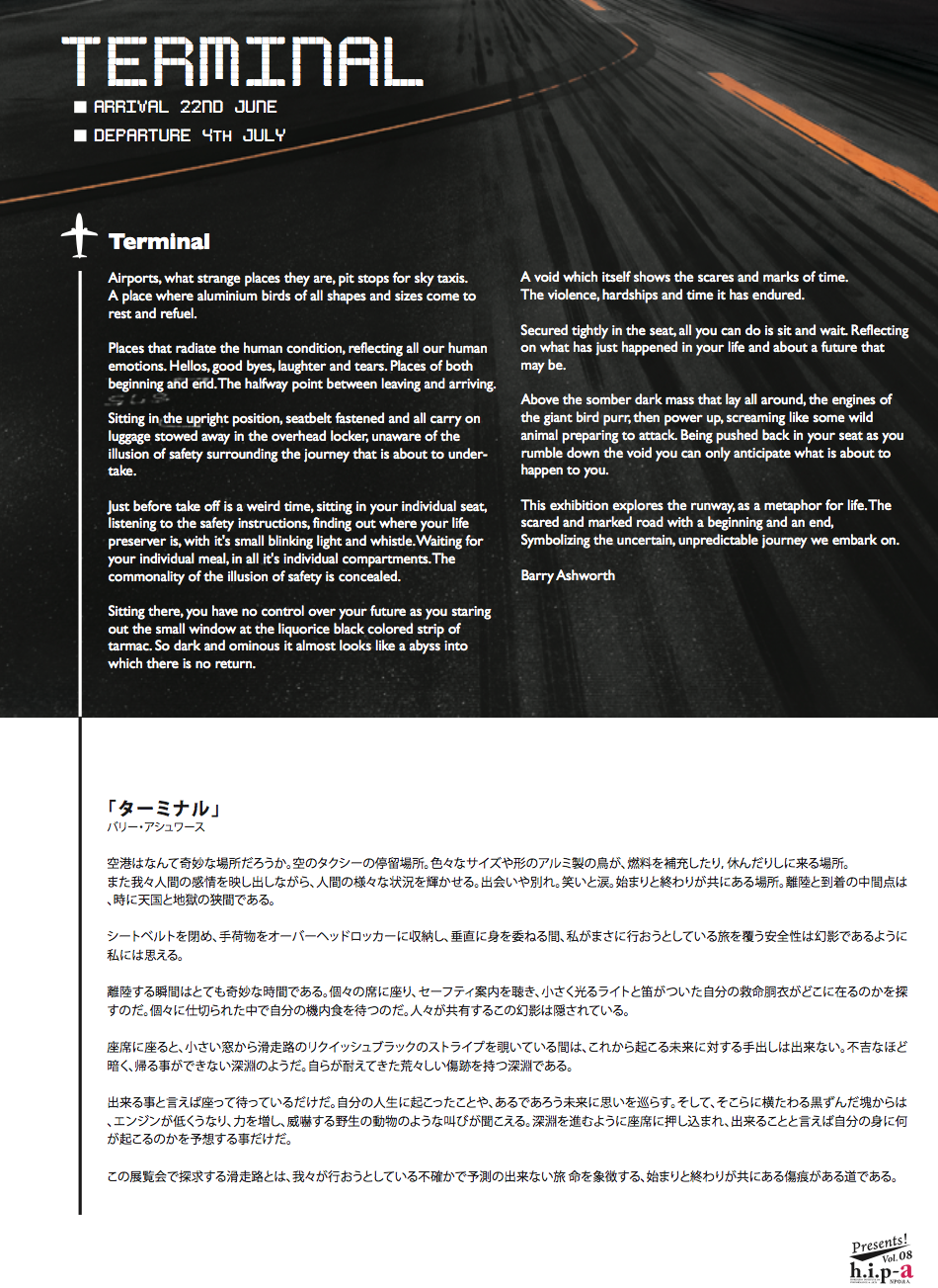 空港はなんて奇妙な場所だろうか。空のタクシーの停留場所。色々なサイズや形のアルミ製の鳥が、燃料を補充したり,休んだりしに来る場所。また我々人間の感情を映し出しながら、人間の様々な状況を輝かせる。出会いや別れ。笑いと涙。始まりと終わりが共にある場所。離陸と到着の中間点は、時に天国と地獄の狭間である。
